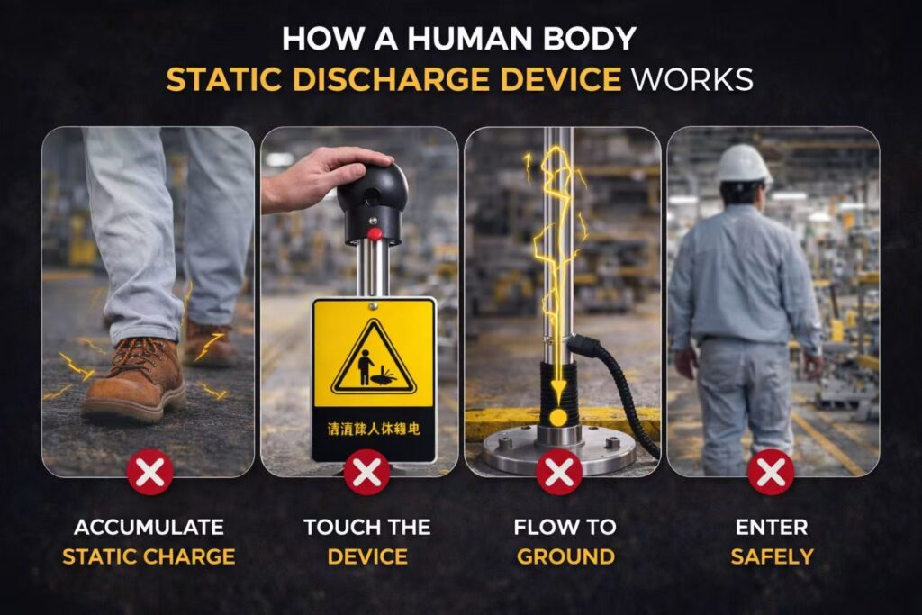 Learn how human body static discharge devices work, why they matter in hazardous environments, and how to choose the right anti-static safety solution for oil, gas, cleanroom, and industrial applications.